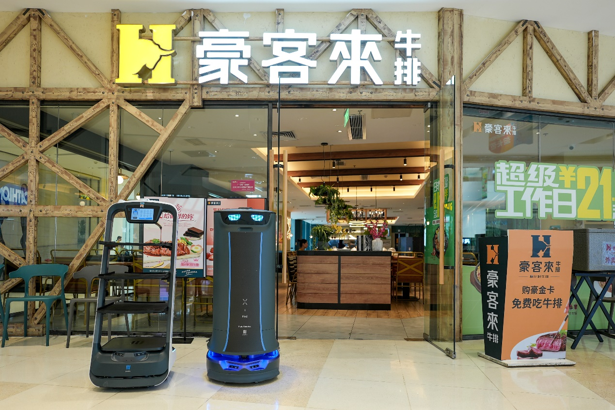 普渡餐饮智能机器人强势入驻豪客来牛排,助力餐厅高效送餐回盘