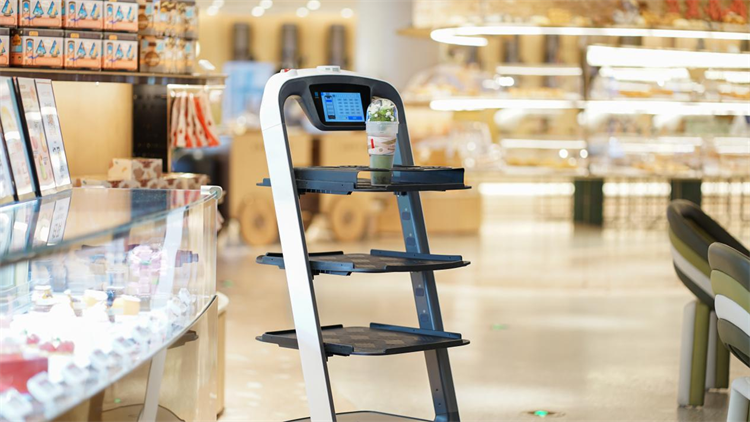 普渡送餐机器人上岗深圳最大的烘焙坊ANGSI昂司