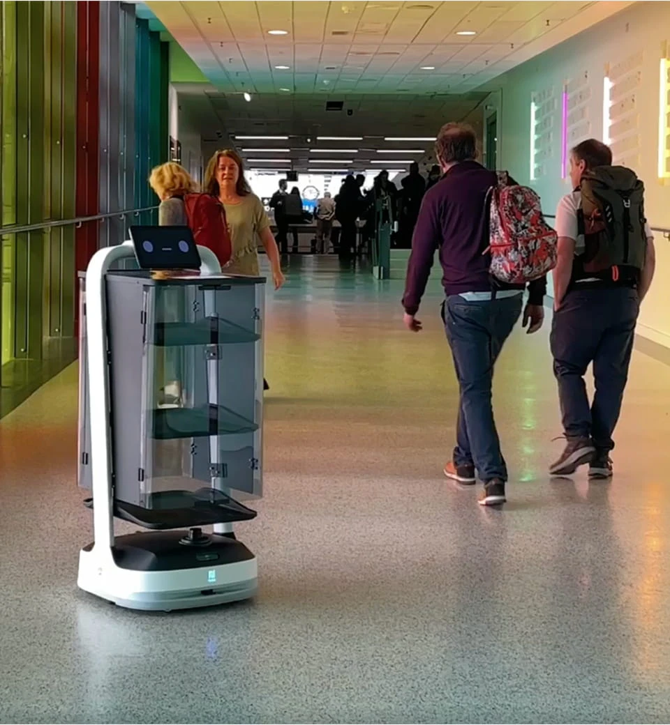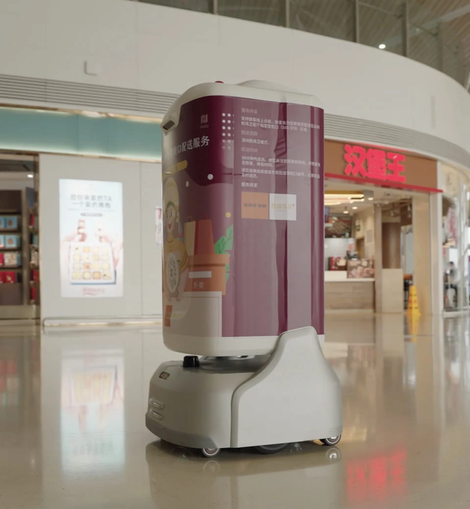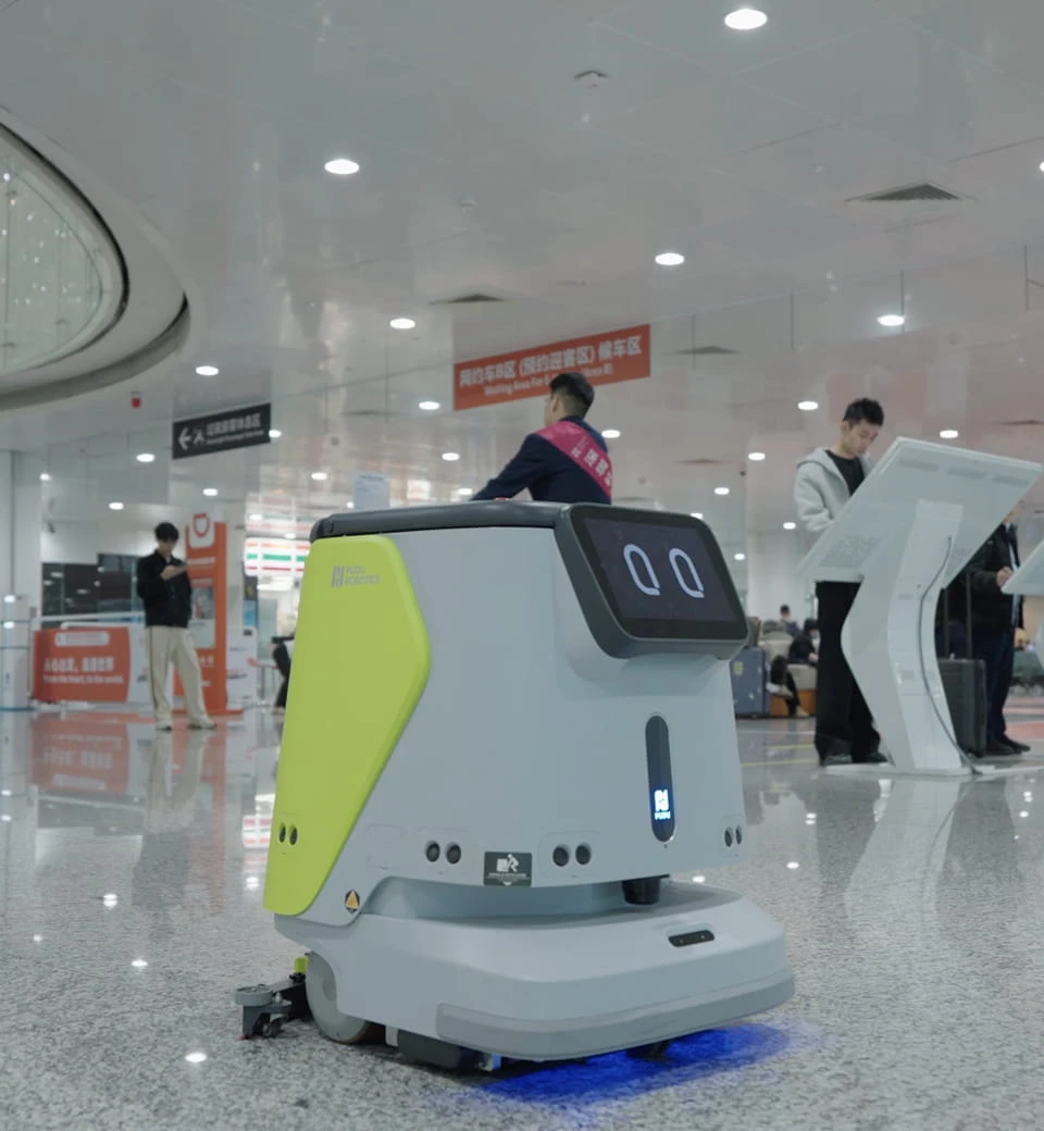 普渡机器人为机场、高铁站、地铁站、高速服务区等交通服务领域提供集地面保洁、零售配送及信息服务于一体的智能化升级解决方案,提升服务运营效率,实现消费者体验升级。