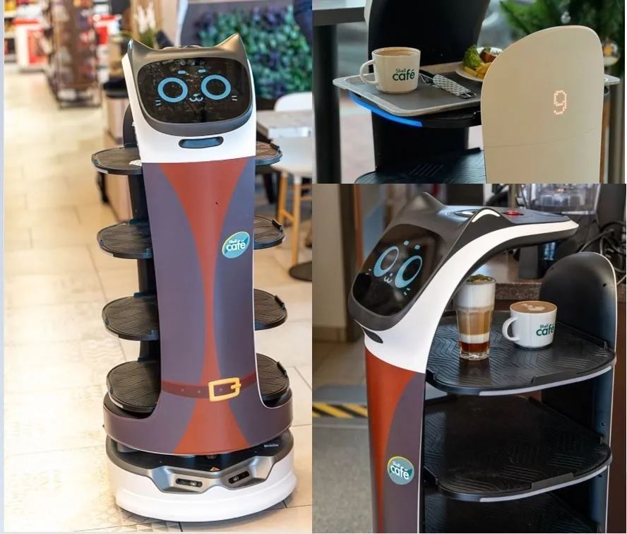 在加油站的壳牌优选便利店(Shell Select)里,“贝拉”身着和便利店员工统一的“工服”,在餐饮区负责为来往的顾客提供送餐服务。官网信息显示,“便利店通过使用‘贝拉’进行自动化送餐来高效地服务顾客。机器人抵达时会有语音播报提示,并展示桌号信息,此时托盘上灯光闪烁,提示客人取走餐品。它可以一次性交付多个订单,遇到障碍物可以马上停下来。‘贝拉’还具备Al语音、灯光、触控等多模态交互功能。”