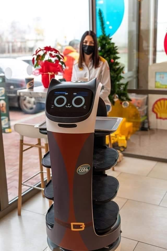 而“葫芦”则是在加油站的商品区担任导购和广告营销的职责。“它会欢迎每一位客户的到来并告知他们正在进行的促销活动,吸引他们使用美食。它还可以引导顾客找到他们想要的美食,比如一杯香喷喷的壳牌咖啡。”位于Września的壳牌加油站成为欧洲第一个使用送餐机器人的加油站,来自普渡科技的“贝拉”和“葫芦”则成为入驻壳牌欧洲加油站的首批机器人。