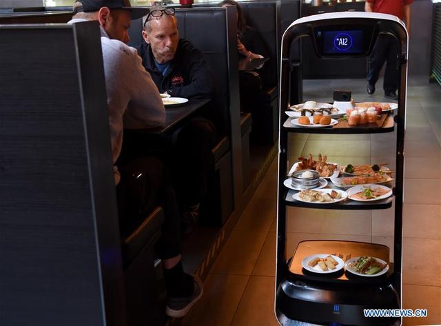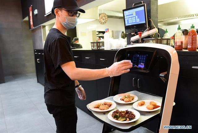 “顾客都很喜欢它(“欢乐送”),经常有人拍照。”Hiro餐厅的服务员Julia Zhu评价道,“在这里,顾客只需要手机下单,后厨制作菜品后选择桌号,机器人就可以把食物送抵客位。顾客不用和服务员接触,机器人返回来后也会消毒,很安全。”