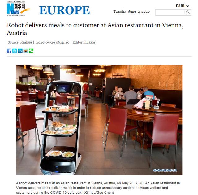 近日,新华网报道机器人在维也纳的Hiro餐馆送餐,人民日报海外网、环球网、印度联合新闻网、北京日报等多家媒体也争相报道。