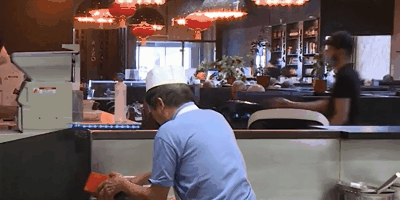 “你不用担心会撞到它(机器人)。”Hiro餐厅另一名服务员说道。
