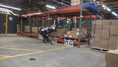 Handle能够通过吸盘进行货物的搬送,按照波士顿动力公司的说法,机器人可以搬动约13.6 公斤重的箱子,在运货盘上将箱子码到1.7米的高度。