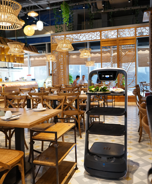 普渡机器人“欢乐送”工作中