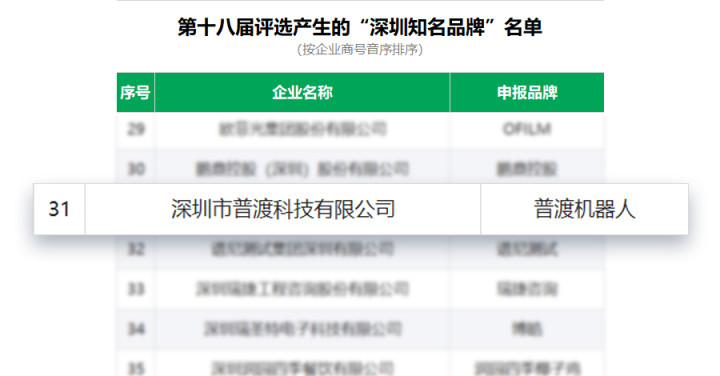 经过《深圳商报》A06版 “品牌之窗 ”专栏、深圳工业网、深圳知名品牌官网一周的公示期,正式获评深圳知名品牌,从此“普渡机器人”打响了创新品牌任重道远的建设之路。