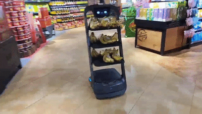 “智能化是趋势,普渡机器人能给顾客新的购物体验。”聚品汇客超市负责人表示,“这已经成为我们超市的标配。”