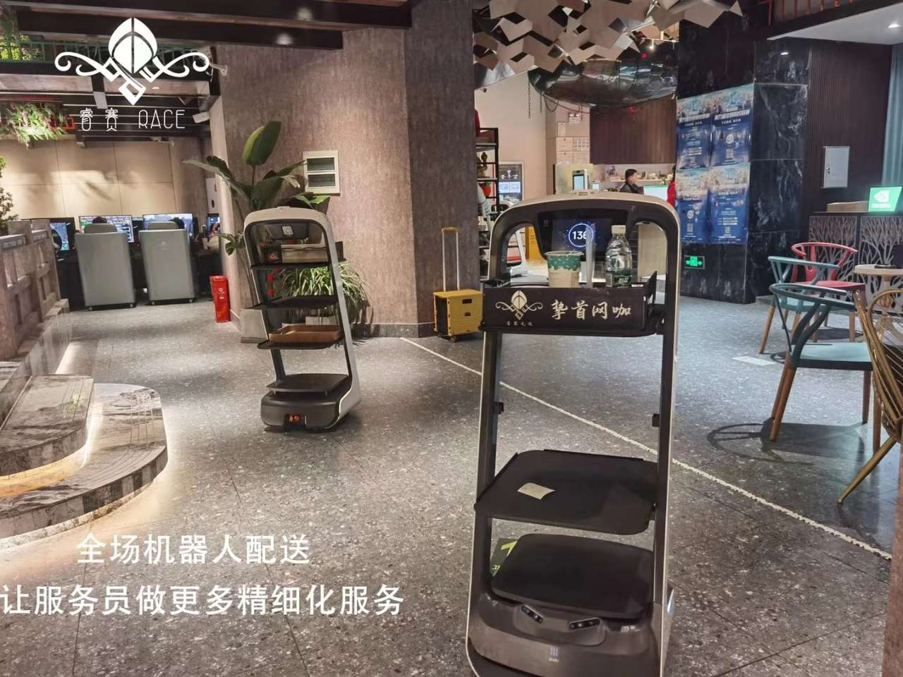 挚首网咖便是如此。早在2019年,挚首就选用了普渡机器人代替部分人工完成相应配送工作。店内古香古色的装修风格,加上穿梭其中的配送机器人,展现出复古与科技的高度融合,打造了一种全新的网吧潮流。