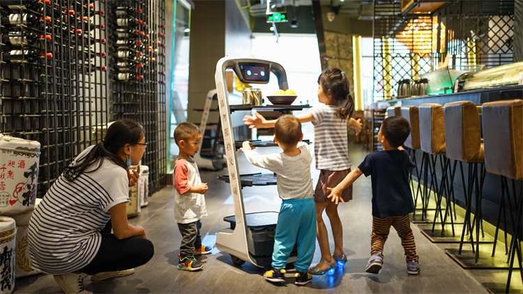 据店员表示,在雇用“欢乐送”送餐机器人之后,武藏日本料理壹方城店在送餐效率和揽客互动方面有非常显著的提升。