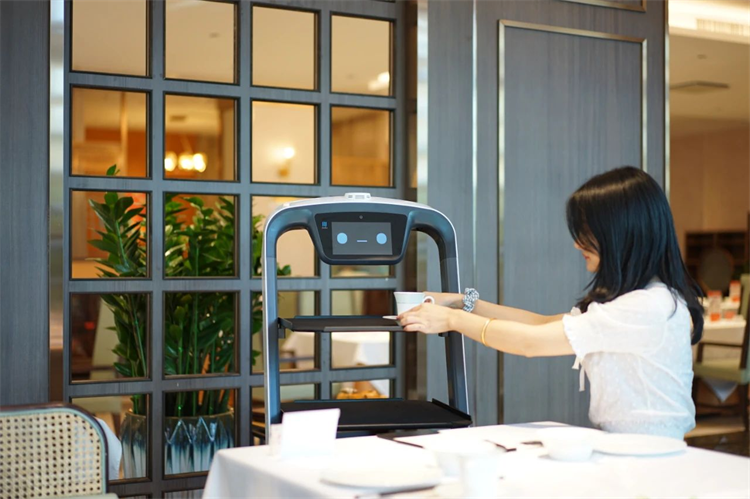 一台“欢乐送”日均配送量达到300托盘,客流高峰期配送超过400盘。而普通服务员一天配送量在200盘左右,机器人已经可以替代1.5到2名专职传菜员的工作,极大地节省了餐饮企业的人力成本,提高了送餐效率。