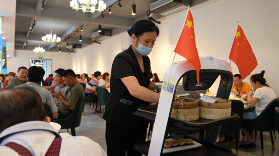入驻点都有茶餐厅后,“欢乐送”为茶餐厅和顾客提供了独特的送餐体验。在现场,可以看到“欢乐送”装载着各式精致茶点不疾不徐地驶向目标餐桌,途中还会灵巧地对障碍物和人进行避让,使得两位特别的服务员分外引人注目。