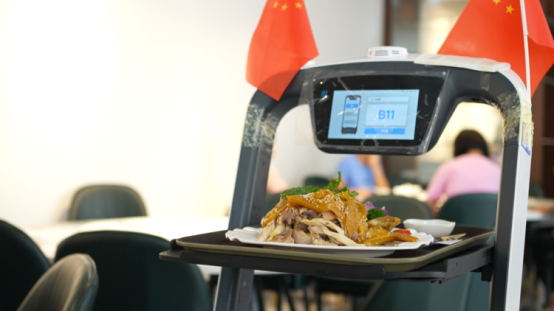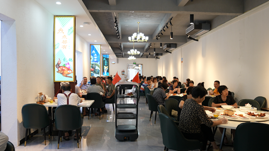 “欢乐送”的使用,极大降低餐饮企业的人工成本,提升送餐效率,减少顾客等待时间。智能送餐机器人负责繁重机械的工作,服务员便得以在各自负责的餐桌旁专注于服务,及时地响应客人的个人需求,另外,智能送餐机器人自带的科技属性让顾客享受到新奇的就餐体验。