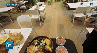 这就是韩国束草的网红餐厅Muhguri,整个店用了各种高科技手段,而其中的送餐任务,就交给了11台普渡机器人。