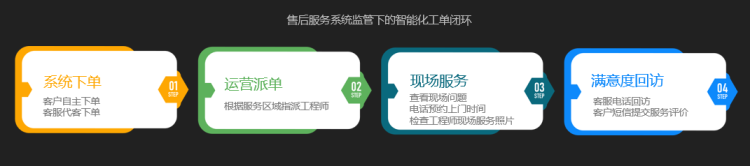 “靠普服务”打造了系统下单、运营派单、现场服务和客户满意度回访的高效、智能、可视化的售后服务流程。系统自动按照服务区域快速分配技术支持工程师,技术支持工程师通过系统电话联系客户,预约上门服务时间,然后到现场查看和解决问题,问题解决后客服会及时对客户进行售后回访,客户也可通过短信提交服务评价。通过售后系统,普渡科技将整个售后服务做到流程标准化、数据可视化,从而不断提升售后服务时效和质量。