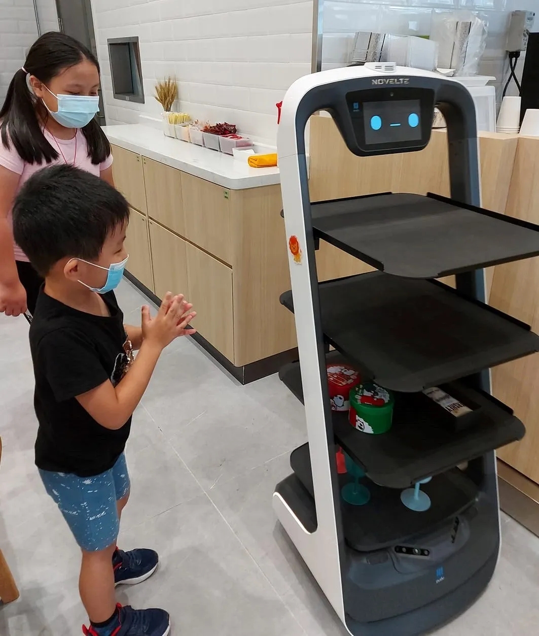 Food On餐厅的工作人员表示机器人“贝拉”和“欢乐送”受到了顾客的喜爱。餐厅里,送餐机器人经常引来小朋友在一旁好奇驻足观看。尤其是猫型机器人“贝拉”,有着丰富的灵动表情,在顾客取完餐后,笑弯了双眼,“喵”的一声原路返回,令顾客啧啧称赞。