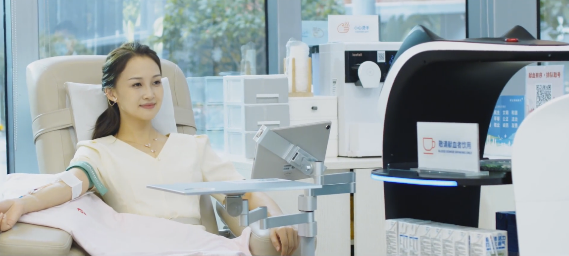 在献血站,“贝拉”会在献血者完成献血之后,随即满载能够补充能量的饮品和食物来到献血者面前,为其提供营养补充。在减轻现场工作人员人力消耗的同时,也能让献血者享受到更卓越的献血服务和更快捷温暖的献血体验。