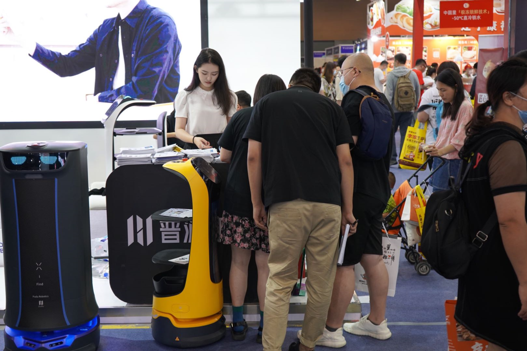 智慧餐饮,科技助力,餐饮智能化也是本届盛会的精彩看点之一。全球领先的商用服务机器人公司普渡科技携智能送餐机器人“欢乐送”、 高端送餐机器人“贝拉”、主打呼叫通知功能的配送机器人“好啦”以及配送迎宾二合一机器人“葫芦”惊艳亮相此次餐博会现场。