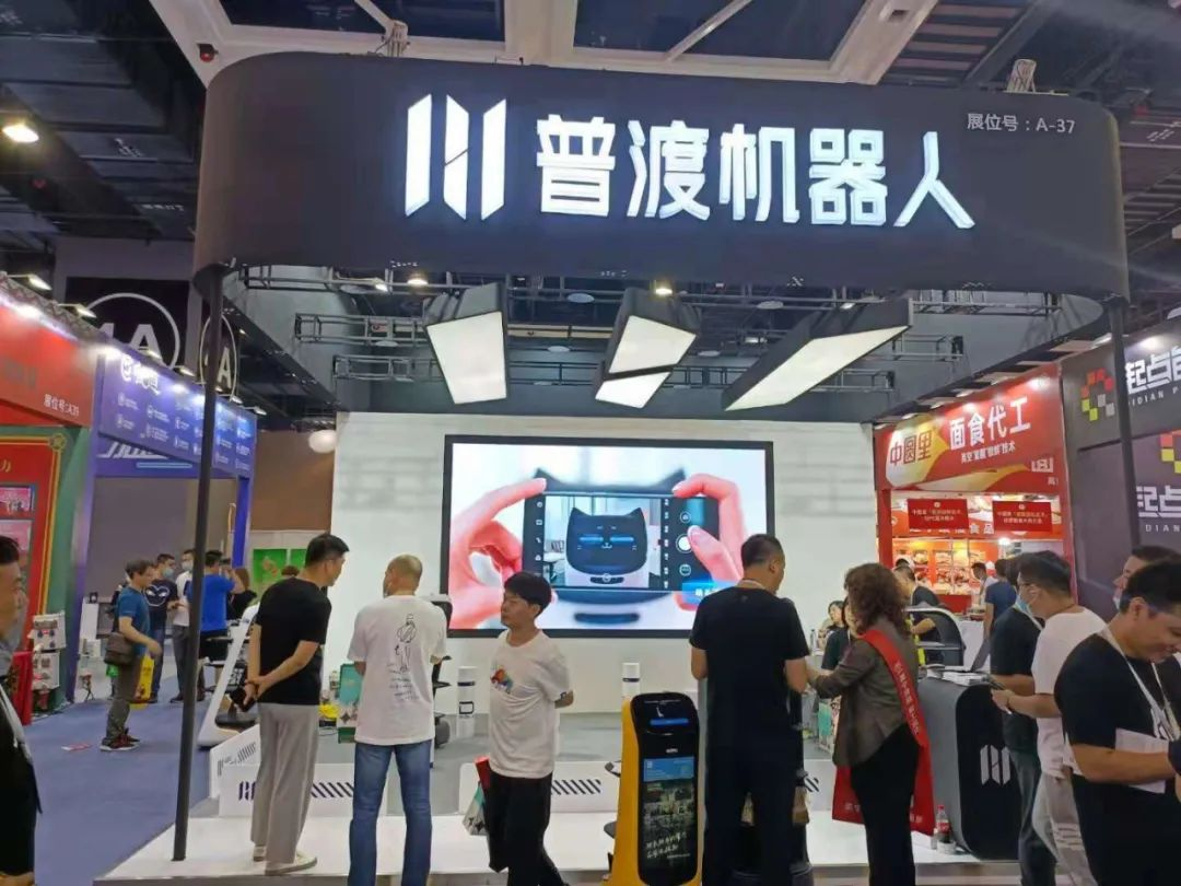 大会现场,人潮涌动,香味四溢,普渡科技A37展位上集结了几款销量口碑俱佳的机器人,“欢乐送”简洁实效,“贝拉”新奇萌趣,“葫芦”小巧多面,它们吸引了众多参观者围观,并在现场与观众进行亲密互动。尤为引人注意的是,普渡机器人家族新成员“葫芦”的广告营销、揽客拉新、迎宾领位、语音互动的多重功能让来往观众直呼高能。驻足展位的观众被机器人的新奇萌趣所吸引,看完机器人的不俗表现后又纷纷惊叹于机器人的优异性能。