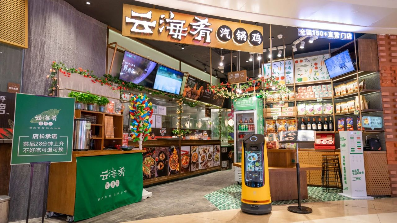 如今,云海肴门店已遍布全国,而深圳的云海肴云南菜(布吉万象汇店)在美食林立的万象汇商场中脱颖而出,食客们纷至沓来,除了想要一品彩云之南的特色饮食文化之外,其实还想一探店内乾坤——这里有普渡机器人“葫芦”!